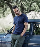 50% ringspun cotton/50% polyester. Enzyme washed.Fashion fit.Narrow ribbed collar with elastane.Taped neck and shoulders.Side seams.Twin needle sleeves and hem.