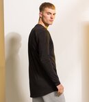 Single jersey. Regular fit. Soft stretch ribbed collar. Taped neck. Side seams. Extra long length. Twin needle stitching. Curved drop hem. Tear out label.