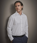 100% yarn dyed cotton twill 100/2. Easy iron fabric.Fused cut away collar.Pearlised buttons.Back yoke.Back darts.Two button adjustable cuffs with button on cuff gauntlet.Curved hem.