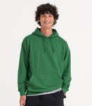 80% ringspun cotton/20% polyester.* Soft cotton faced fabric. Brushed back fleece. Drop shoulder style. Double fabric hood with self colour drawcord. Front pouch pocket. Ribbed cuffs and hem. Twin needle stitching. Tear out label.