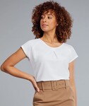 The Molly round neck work blouse, featuring the same textured, drapey fabric as its sister style Grace. Molly's gentle neckline, inverted pleat, scooped neckline & relaxed fit give graceful panache & wide appeal..